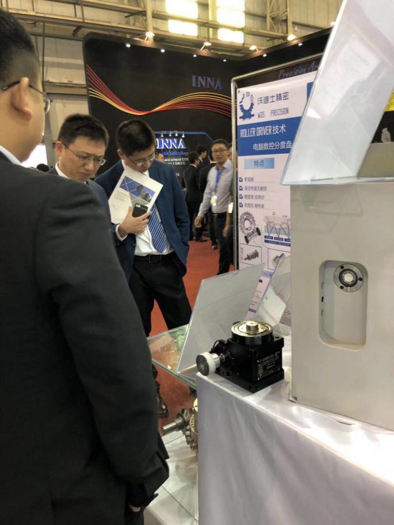 對(duì)于這場(chǎng)家門口的盛會(huì),沃迪士自然不會(huì)錯(cuò)過(guò)。凸輪滾子傳動(dòng)機(jī)構(gòu)的優(yōu)越性在這幾年間已經(jīng)漸漸被行業(yè)所認(rèn)識(shí)和認(rèn)可,沃迪士攜帶第四軸數(shù)控轉(zhuǎn)臺(tái)(盤面直徑120mm到400mm)以及單臂五軸、搖籃五軸產(chǎn)品在DMP現(xiàn)場(chǎng)吸引了很多的用戶和經(jīng)銷商前來(lái)討論詢價(jià),新開發(fā)面世的主軸擺頭則讓來(lái)訪的數(shù)控機(jī)床商津津樂(lè)道,與我們的銷售經(jīng)理熱烈討論配套開發(fā)新型高端機(jī)床的合作方案。